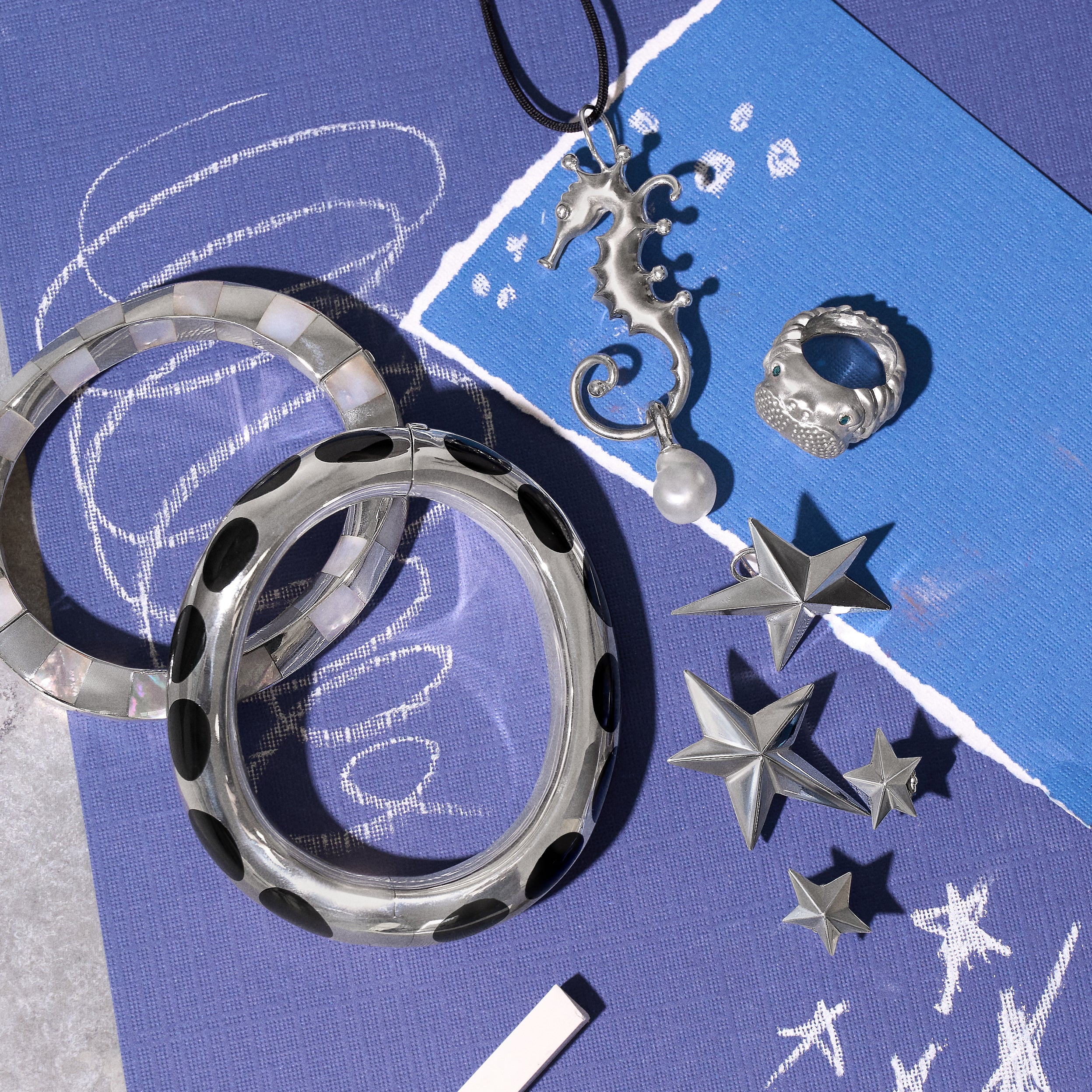The fundamental form is a glistening drop of water. From that, many motifs emerge—dimensional links, mother-of-pearl tennis bracelets, an inventive interpretation of a padlock.
