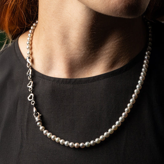 Akoya Silver-Blue 6-6.5mm Pearl Strand with Sterling Silver Triple Heart Clasp