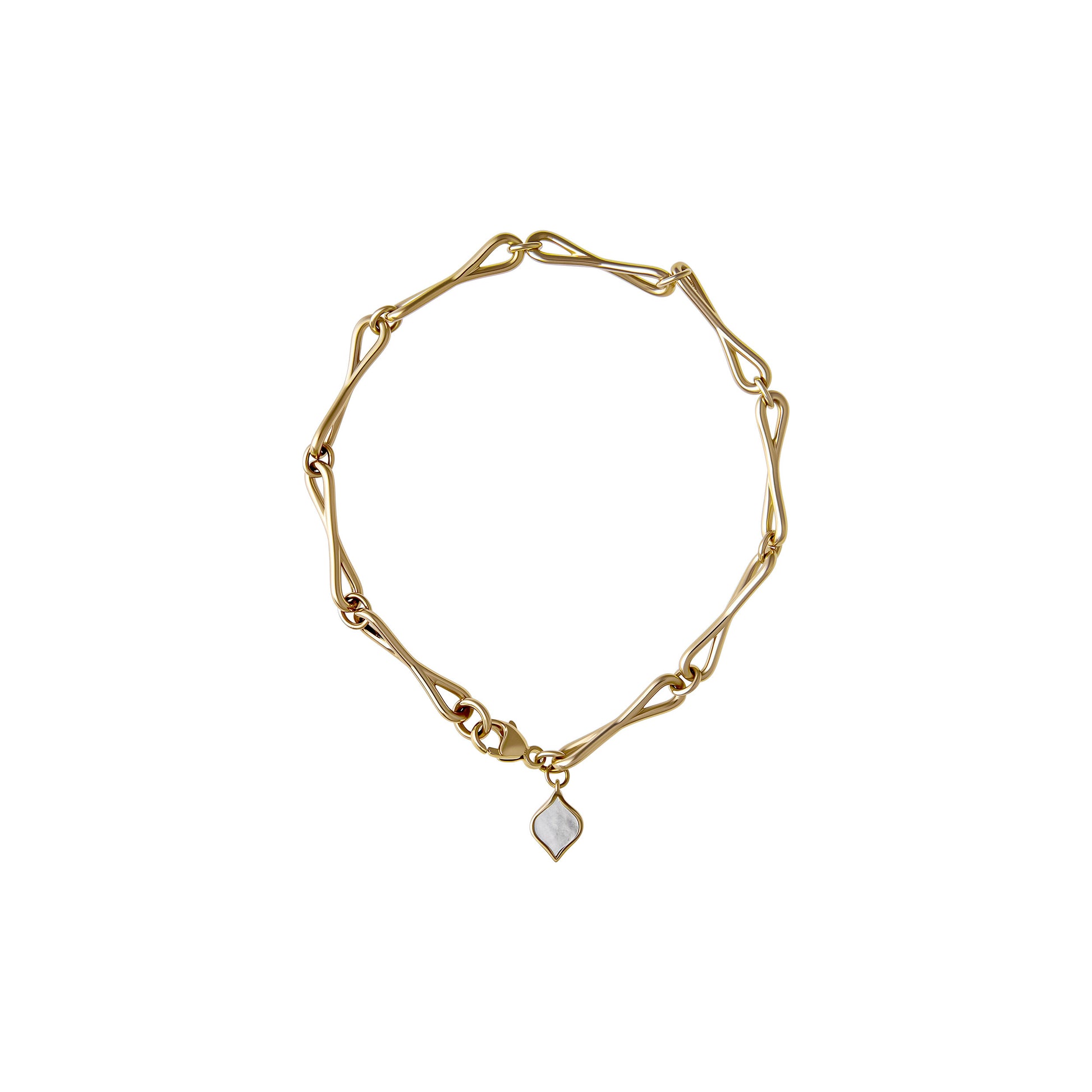 Our essential chain is built from distinctive links inspired by water drops. An everyday signature piece to wear alone or layered.